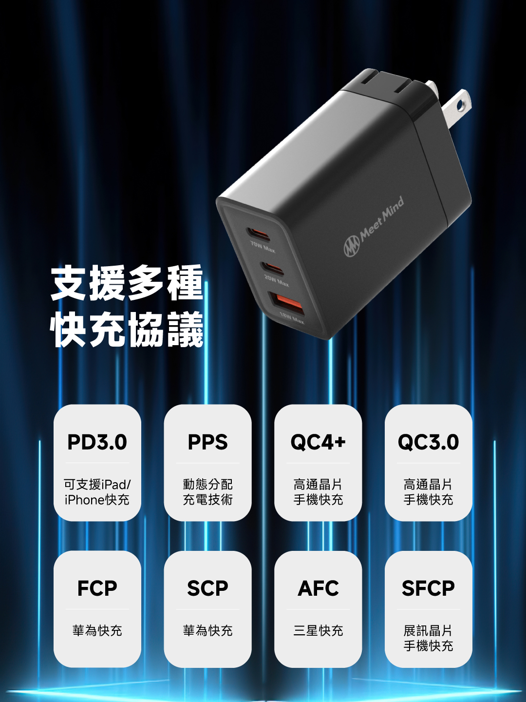 支援協議:PD3.0/QC4+/PPS/AFC/FCP