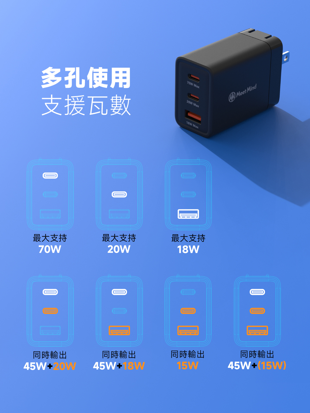 【C1+(C2+USB-A)】45W+15W