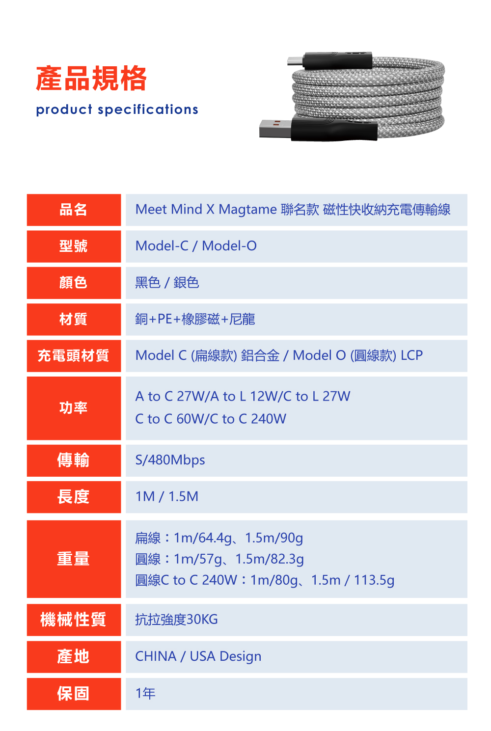 整條線均以磁性材料包裹,磁性十足。因此,您可以輕鬆纏繞充電線,使其井井有條且不會纏結。創新又實用!